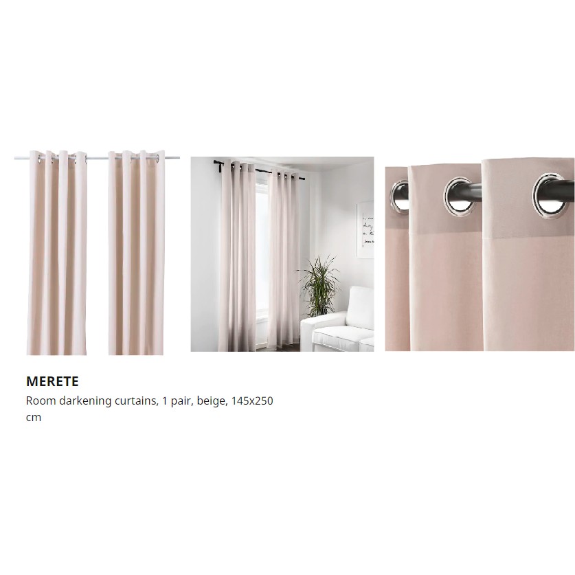 Custom drapes ikea beige room home new living room room colors decor living room windows modern room. Ikea merete curtain one 1 single panel 57x98 grommets coral salmon 404.436.80. Dense curtains effectively block light and protect from prying eyes. Ikea curtains (merete, rekka) detailed model of ikea curtains (2 merete 300/145) with tulle (2 lill 300/145) on cornise(rekka). Merete rumsformorkande gardiner 1 par beige vardagsrum diy.